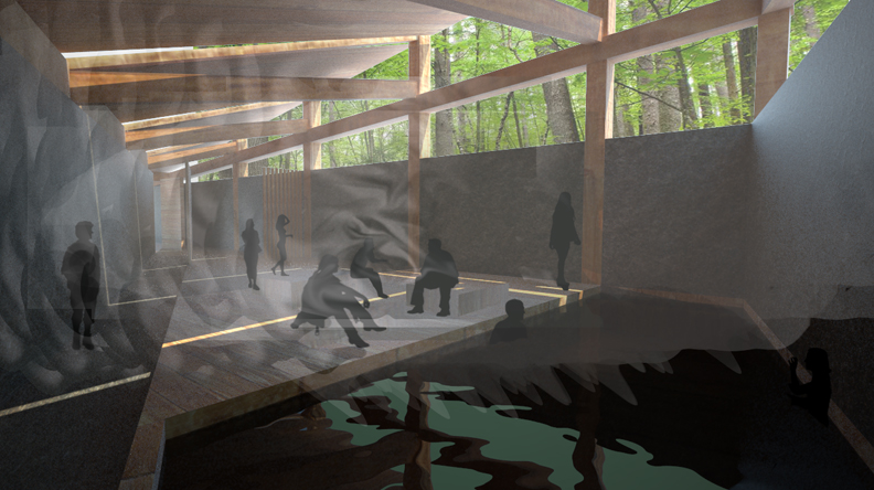 The wood floor of the entry hall creaks as the warm smell of cedar fills the hiker’s nose.